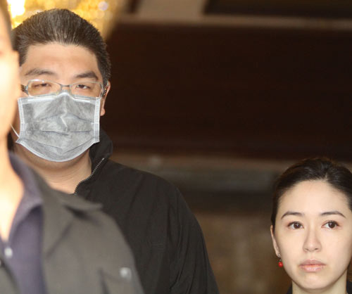連勝文今日上午10點13分步出居住的一品大廈,雙眼明顯浮腫,腳步蹣跚,連勝文戴著眼鏡并且戴上口罩,右眼邊上貼著透氣膠布,右臉的浮腫相當(dāng)明顯,因為太多麥克風(fēng)推到他面前,急得妻子蔡依珊在一旁急著提醒“不要碰到傷口”,擔(dān)心之情溢于言表。