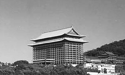 上個(gè)世紀(jì)50年代,臺(tái)北還沒有一家五星級(jí)飯店,蔣介石感到接待外賓尤其是外國政要很不方便,于是就想蓋一座“國賓館”。那么,飯店蓋在哪里好呢?宋美齡認(rèn)為位于基隆河濱、圓山山腰的臺(tái)灣飯店就很好。因?yàn)閭髡f這是塊風(fēng)水寶地,當(dāng)年日本人就看中這里是所謂的“龍尾穴”,建起了神社。臺(tái)灣光復(fù)后,在神社的廢墟上蓋起了臺(tái)灣飯店,由本地的旅行社經(jīng)營。雖然臺(tái)灣飯店只有36間客房、1間餐廳,建筑老舊,設(shè)備簡陋,但環(huán)境清幽,視野開闊,宋美齡很喜歡在這里接待外賓。地址選好了,那么選擇什么建筑式樣呢?幾經(jīng)考慮,蔣介石最后選擇了中國宮殿式房舍和庭院,意圖憑借其莊重宏偉的外觀、典雅精致的陳設(shè),向外賓宣揚(yáng)中國的傳統(tǒng)文化。臺(tái)灣著名的建筑設(shè)計(jì)師楊卓成先生為此繪制了12張風(fēng)格迥異的設(shè)計(jì)圖,蔣介石選了其中一張?梢哉f,圓山飯店從它建成的第一天起,就注定要成為人們關(guān)注的焦點(diǎn)。