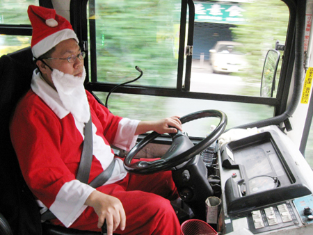 中新網(wǎng)12月20日電 隨著圣誕節(jié)到來,臺北市某客運公司約五百名司機最近又悄悄變裝,打扮成圣誕老公公的模樣,讓平淡的公交車之旅變得更多采多姿,也平添不少歡欣的過節(jié)氣氛。