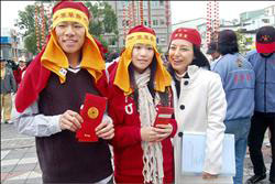 中新網(wǎng)2月15日電 昨天是情人節(jié),伍重瀚、蔡悅晨這對臺灣情侶選擇站上情人轎扮演寒單爺(臺東地區(qū)漢人的民間信仰中相當(dāng)獨特的一支)接受炮轟,成為史上首對情侶檔寒單爺。