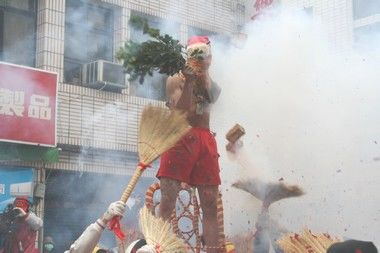 其中的重頭戲炮炸寒單爺,今年一共安排了十四場(chǎng)次的定點(diǎn)表演。第一次看表演的民眾覺(jué)得是既恐布又過(guò)癮。