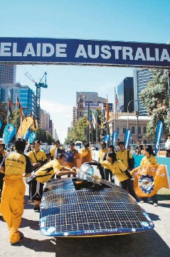 正式比賽時,一度烏云密布,“太陽能板無法充電,還好后來天氣轉晴,逐漸發(fā)揮實力!卑筒f,五天賽程中一直居于第二,次于日本蘆屋大學的Tiga太陽能車,但將美國史坦福大學、澳大利亞西南韋爾斯大學等強隊拋在后頭。