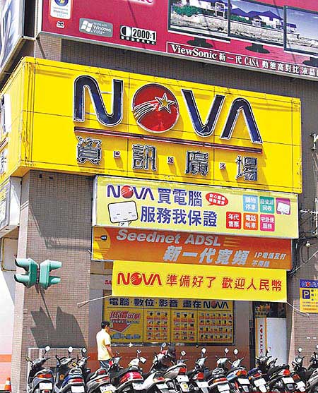 中新網(wǎng)4月23日電 大陸觀光客來(lái)臺(tái)將帶動(dòng)島內(nèi)消費(fèi)商機(jī),3C賣場(chǎng)連鎖大賣場(chǎng)NOVA日前率先在店外拉出“NOVA 準(zhǔn)備好了 歡迎人民幣”布條,業(yè)者表示,是為歡迎大陸觀光客的廣告詞,現(xiàn)階段是否接受人民幣則由賣場(chǎng)內(nèi)各店家自行決定。不過(guò),臺(tái)當(dāng)局“央行”官員說(shuō),人民幣在臺(tái)收兌尚未開(kāi)放,此舉屬非法交易。