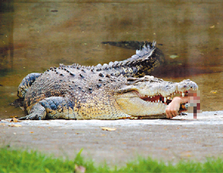 壽山動物園4月傳鱷魚咬人意外,動物園組長張博宇為鱷魚治病遭咬斷左前臂。搶回斷臂后接合后,張博宇持續(xù)復健中,至于闖禍的鱷魚正在冬眠。記者劉學圣/攝影