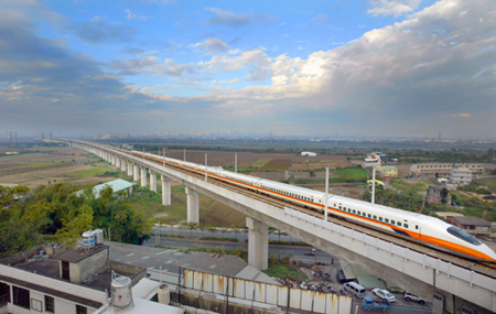 歷經(jīng)一連串風(fēng)波后,臺灣高鐵正式通車營運,成為臺灣交通史新的里程碑,目前旅客已突破1500萬人次。圖為高鐵列車通過彰化縣進入臺中縣前的畫面。記者于志旭/攝影