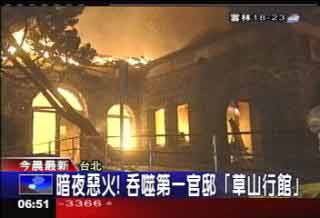 “草山行館”是蔣介石夫婦到臺灣后的第一個住處,只是蔣介石的二十余處官邸之一,名聲遠不及“士林官邸”,因為行徑偏僻,游客寥寥無幾!安萆叫叙^”從未能成為“尊蔣”的標志,卻因為這把火,成為了“去蔣”運動達至高潮的象征。