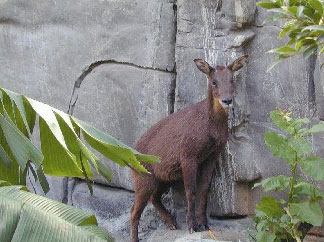臺(tái)灣長(zhǎng)鬃山羊?yàn)榕_(tái)灣特有種。它們主要分布在臺(tái)灣山區(qū),烏來延伸至中央山脈仍可看到它們的蹤影。其外形為深褐色,喉部為黃色,硬蹄分泌蹄脂腺,有助于攀爬山巖,并牢牢地踩在石縫之間,因此喜在懸崖附近活動(dòng),奔跑速度快,若受外力入侵,它們還會(huì)以頭上一對(duì)向后彎曲的洞角頂人自衛(wèi);平時(shí)吃桑葉、鹿構(gòu)樹葉、三黃麻等枝葉、胡蘿卜等。