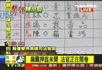中新網(wǎng)11月11日電 據(jù)臺灣TVBS電視臺報道,陳水扁經(jīng)過近7小時偵訊后,在今天下午4點(diǎn)35分遭到臺灣檢方聲押,隨即被移送到臺北地方法院,而法院正在閱卷,閱卷后將開聲押庭,時間可能是在晚間8點(diǎn),將決定是否正式收押陳水扁。