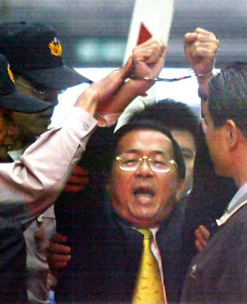 11月11日 臺灣檢方特偵組偵辦機(jī)要費(fèi)案及陳水扁家庭疑洗錢案,法院在第五度以被告身份傳喚陳水扁到案說明后,經(jīng)過6個(gè)多小時(shí)的偵訊,陳水扁被檢方聲請羈押禁見,并銬上手銬,移送到臺北地方法院開羈押庭,等待法官裁決是否要收押。