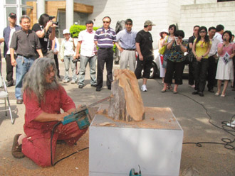 踩線團昨天上午造訪三義,當?shù)匚骱燃俅逭垇淼窨碳冶硌荼;木雕博物館則請到藝師現(xiàn)場示范木雕,以樟木為材,短短十分鐘就創(chuàng)作一座母抱子雕像,踩線團大贊“有功力”。