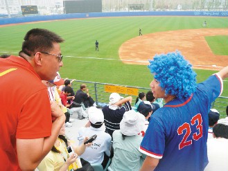 起初,大陸的加油動作與聲浪比臺灣球迷出色,但他們不知臺灣選手的名字,加起油來很單調(diào)。不久,臺灣拉拉隊(duì)開始發(fā)威,觀眾注意力轉(zhuǎn)向三壘。連大陸的拉拉隊(duì)長也跑到臺灣球迷的觀眾席,研究共同加油方式。