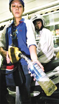 中新網(wǎng)10月31日電 臺(tái)灣島內(nèi)油價(jià)周五漲價(jià),確定會(huì)漲到歷史新高,引發(fā)用油族的“囤油效應(yīng)”,不少人最近紛紛帶著瓶子上加油站,摩托車油箱加滿后再“加滿瓶”帶回家,高油價(jià)意外點(diǎn)燃“汽油炸彈滿街跑”的安全疑慮。