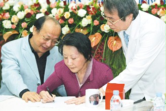 中新網(wǎng)11月18日電 據(jù)臺(tái)灣《聯(lián)合報(bào)》報(bào)道,臺(tái)中市長(zhǎng)胡志強(qiáng)的夫人邵曉鈴昨天出院,她感謝所有人,并寫“Thank you”感謝醫(yī)師。主治醫(yī)師鄭隆賓說,邵曉鈴大腦受傷,掌管語言、空間與動(dòng)作的區(qū)域受損,連提筆都困難,筆劃更是擠成一團(tuán),字體左右相反,單是名字就學(xué)了兩個(gè)多月。