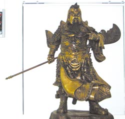 中新網5月6日電 一尊面帶威嚴、與真人一般高的銅制關公像矗立在臺中縣太平分局,經過的人看了,一股正義感油然而生。其實,這尊關公像是現任分局長郭瑞權的私人收藏,他說,這么作是藉此提醒大家,要效法關公的正義之氣。