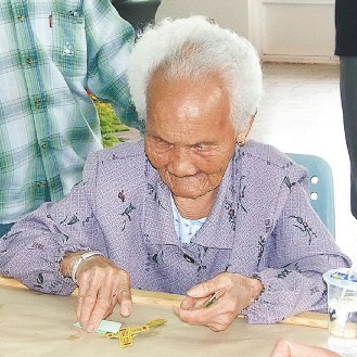 中新網(wǎng)5月7日電 “胡啦!”苗栗縣96歲的廖金妹老太太目不識(shí)丁,但玩起傳統(tǒng)四色牌卻很強(qiáng),在一場(chǎng)銀發(fā)族競(jìng)賽中,她擊敗各路好手晉入決賽,簡(jiǎn)直是“高齡女賭神”,問她怎么認(rèn)牌?她說(shuō)“啊哉”(“不知道”之意)。