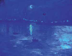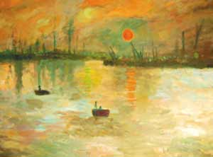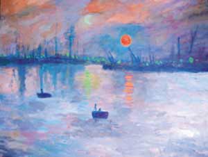 中新網(wǎng)7月9日電 莫內(nèi)名畫“印象‧日出”,也有“日落”、“夜幕”版嗎?據(jù)臺灣《聯(lián)合報》報道,臺大機(jī)械工程系教授黃秉鈞利用調(diào)控投射在名畫上的彩色LED光源,制造出名畫不同風(fēng)貌,發(fā)展出嶄新的“LED歐普藝術(shù)”。