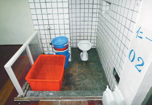 看守所房舍中浴室兼廁所,馬桶沒有蓋,陳水扁只能蹲著洗澡。圖片來源:臺(tái)灣《聯(lián)合報(bào)》