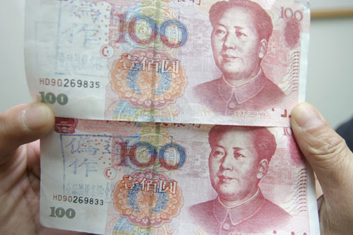 據(jù)“中央社”報道,臺灣數(shù)家機場金融機構(gòu)分別在5日和12日發(fā)現(xiàn)部分臺商使用HD90開頭的偽造百元人民幣紙鈔,各有1張和2張,但紙質(zhì)和防偽線異常,一眼就被行員識破,行員登記旅客個人資料后將偽鈔沒入。