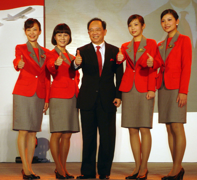 中新網(wǎng)11月16日電 據(jù)“中央社”報道,臺灣遠東航空十六日舉行五十周年慶,董事長樂大信(中)表示,展望兩岸市場是未來最大目標。
