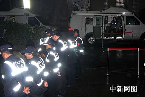 12月29日下午2時(shí),臺(tái)北地方法院開始召開羈押庭,就是否收押陳水扁做出裁決。時(shí)間已過去十一個(gè)小時(shí),最終裁決仍未有結(jié)果。圖為臺(tái)北地方法院靠近司法警察室的側(cè)門口。警察仍在戒備。(圖文/陳立宇)