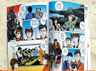 這本120頁的防務漫畫,由四名政戰(zhàn)學校藝術系畢業(yè)的現役軍官操刀,走日式畫風,書中每個男性軍官都英挺瀟灑,女軍官則是柳腰配上俏麗短發(fā)。