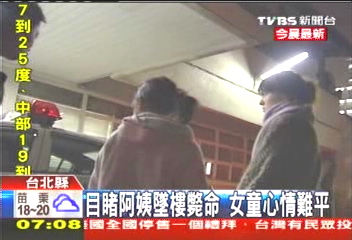 下午6點多,女童和林姓女子出門回家,發(fā)現(xiàn)忘了帶鑰匙,林姓女子打開樓梯間的窗戶,想爬到家里陽臺,但卻失足從4樓高摔下,頭先撞到雨棚再掉到1樓,當(dāng)場斃命;小女童目擊一切,小小心靈受傷,恐怕一時半刻難以平復(fù)。