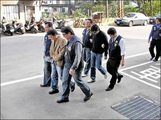 警方昨天兵分八路,分別在桃園、龍?zhí)丁⒋笙?zhèn)拘提主嫌、集團(tuán)成員到案,查扣本票、微量毒品、棍棒等證物,但并未起出槍械。