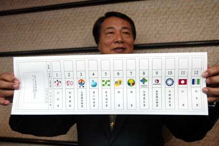 中新網(wǎng)12月21日電 臺灣當(dāng)局“中選會”今天公布有史以來首張彩色選票樣張,上面印有十二個參選不分區(qū)“立委”的政黨名稱及其政黨標(biāo)章。