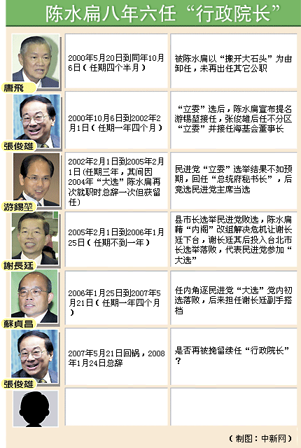 新聞資料:陳水扁八年歷經(jīng)六任“行政院長(zhǎng)”