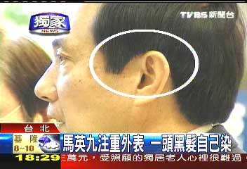 幕僚私下透露,馬英九這一頭黑發(fā)其實(shí)是染的,而且馬英九完全不假他人之手,通通自己來(lái),還因此省下不少上美容院的錢(qián)。只是馬英九畢竟不專(zhuān)業(yè),偶爾會(huì)被眼尖的人發(fā)現(xiàn),出現(xiàn)一兩撮沒(méi)有染到的頭發(fā)。