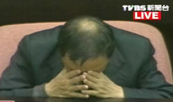 可能因?yàn)槿唛L(zhǎng)的會(huì)議,杜正勝用力搓揉自己的眼睛,似乎想讓自己打起精神來,但抵抗不住濃濃的困意,開始閉目養(yǎng)神。