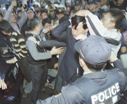 雙方僵持長達三十分鐘,約下午五時左右,轄區(qū)警察獲報到達現(xiàn)場,發(fā)現(xiàn)事態(tài)擴大,決定調派警備隊的警車把“立委”帶離現(xiàn)場,未料,大批黨工推擠,現(xiàn)場叫罵聲不斷,不肯讓警車離去,現(xiàn)場群眾和警方爆發(fā)沖突。