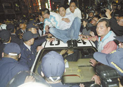 眼見已發(fā)生警民沖突,臺北警方立刻提高處理層次,先由中山分局出動各派出所待命警力,并調派保安大隊五十名警察趕到現(xiàn)場,利用優(yōu)勢警力,把警車團團圍住。