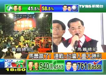 馬蕭大勝! 連戰(zhàn):“臺(tái)灣不再有對(duì)立仇恨”(圖)