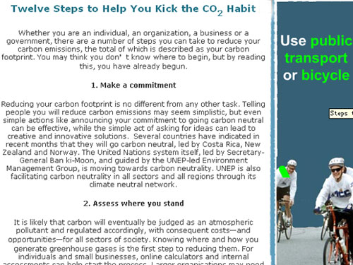 6月5日是聯(lián)合國(guó)世界環(huán)境日。據(jù)《聯(lián)合報(bào)》報(bào)道,聯(lián)合國(guó)日前已經(jīng)特地在官方網(wǎng)站鼓勵(lì)世人以五種方式響應(yīng)環(huán)保節(jié)能。特別的是,網(wǎng)站上提倡以大眾交通工具和自行車(chē)取代開(kāi)車(chē),采用的廣告主角是馬英九。