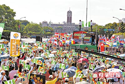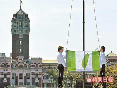 臺(tái)灣《蘋果日?qǐng)?bào)》9日?qǐng)?bào)道,臺(tái)灣“獨(dú)派”團(tuán)體“9.08臺(tái)灣國”聯(lián)盟昨天在臺(tái)北市凱達(dá)格蘭大道上舉行升“臺(tái)灣國旗”鬧劇,并由“臺(tái)灣公民社”秘書長廖林麗玲宣讀所謂的“臺(tái)灣國宣言”,叫囂終結(jié)“中華民國體制”,邁向“臺(tái)灣建國”之路。