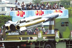 圖為臺(tái)自制研發(fā)的“雄風(fēng)三型”導(dǎo)彈。(《中國時(shí)報(bào)》圖)