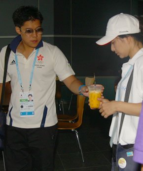 昨天下午新加坡烈日當(dāng)頭,氣溫很高,在活動進行到一半時,體貼的霍啟剛還為郭晶晶買來了冰鎮(zhèn)飲料,并在活動結(jié)束時大方地來了個單獨合影。