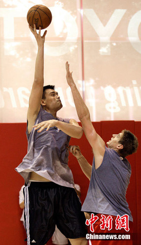 中新網(wǎng)8月25日電 北京時間今日據(jù)美聯(lián)社報道,美國當?shù)貢r間周二,姚明在火箭隊主場豐田中心進行了公開恢復(fù)性訓(xùn)練。