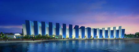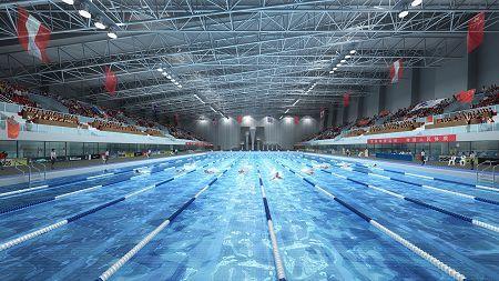 廣東奧林匹克體育中心游泳跳水館是亞運會游泳跳水項目的主要比賽場館,將舉行游泳、跳水和現(xiàn)代五項游泳比賽及亞殘會游泳比賽,賽后將作為國家南方訓(xùn)練基地,滿足國家隊冬訓(xùn)及亞運會之后舉行重大賽事的要求。該館總坐席數(shù)為4584座,分別設(shè)置了標(biāo)準(zhǔn)比賽池(含移動池岸)、訓(xùn)練池、跳水池。其設(shè)計力求與原基地環(huán)境相協(xié)調(diào),總體布局上延續(xù)了奧林匹克體育中心的總體規(guī)劃設(shè)計理念,游泳館主體造型采用雙色螺旋流動造型,主體建筑白色和藍(lán)色相間,既巧妙地隱喻了廣州“云山珠水”的城市地理特征,又是對主體育場“飄帶”曲線的延續(xù)。同時通過相互穿插流動造型,結(jié)合建筑朝向,很好的滿足了建筑內(nèi)部空間高度、采光通風(fēng)、建筑節(jié)能以及合理布置設(shè)備管道的需求。