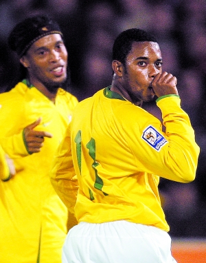 本場(chǎng)比賽從排兵布陣上就可以看出巴西隊(duì)拿出了真本事。鋒線排出目前所能排出的最強(qiáng)組合,小羅、羅比尼奧、法比亞諾組成三叉戟。鄧加把最大的希望寄托在羅羅組合上,尤其是剛剛以4200萬(wàn)歐元的身價(jià)轉(zhuǎn)會(huì)到曼城的羅比尼奧。在最近的訓(xùn)練中,鄧加和羅比尼奧反復(fù)交談,很顯然,羅比尼奧是鄧加的關(guān)鍵一步棋。小羅在AC米蘭的聯(lián)賽首戰(zhàn)表現(xiàn)出色,贏得滿堂喝彩,加之卡卡因傷缺席,小羅回到首發(fā)陣容也不意外,這是他時(shí)隔一年后再度代表巴西國(guó)家隊(duì)出場(chǎng)。賽前,小羅表示自己希望和羅比尼奧搭檔:“與羅比尼奧踢球挺好的,因?yàn)樗磻?yīng)和思考特別快!倍鲙涏嚰右仓v道:“小羅能頂在前面,在前場(chǎng)左路,這也是他發(fā)揮最出色的一個(gè)位置。他和羅比尼奧可以一起首發(fā),他們都是能獨(dú)自解決比賽的球員。”