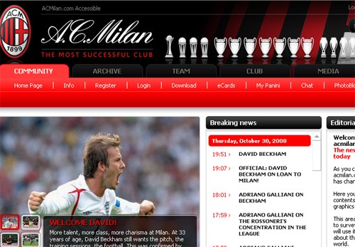 AC米蘭俱樂部官方網(wǎng)站截屏