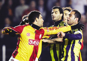 土耳其超級(jí)聯(lián)賽昨晨舉行了一場(chǎng)被稱之“國家德比”的焦點(diǎn)大戰(zhàn)。最終加拉塔薩雷0:0戰(zhàn)平費(fèi)內(nèi)巴切。比賽結(jié)果雖然平淡,比賽過程卻異;鸨ち遥荣愖詈髸r(shí)刻雙方球員起了激烈沖突。導(dǎo)火索是加拉塔薩雷隊(duì)的攻擊型中場(chǎng)阿爾達(dá)·圖蘭在比賽的最后一分鐘,與費(fèi)內(nèi)巴切的西班牙國家前鋒丹尼爾·古伊薩起了摩擦,圖蘭當(dāng)場(chǎng)掌摑古伊薩。雙方球員見狀都失去了理智,最終發(fā)展成為群毆。