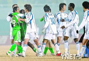 如果這次還可以說是裁判的失誤,那終場之后雙方的沖突就只能說是天津隊的責任了:比賽結(jié)束之后,郭輝與譚望嵩發(fā)生了口角,后者手上有了推搡的動作,一直克制的郭輝卻在這個時候被對方外援多烏達搧了一個耳光!此舉徹底激起了國安替補席的怒火,而天津的教練組和替補隊員也馬上進入了球場之中,雙方發(fā)生了肢體上的沖突,杜文輝的右眼角被重重打了一拳,瘀青的痕跡非常明顯。而天津隊隊長曹陽和外援多烏達在走進更衣室之前更是向看臺做出了不文明的手勢,也將有可能受到足協(xié)的追加重罰。