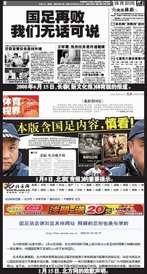 媒體以這樣的標(biāo)題和版面設(shè)計(jì)方式來(lái)表達(dá)對(duì)國(guó)足的批評(píng),讓人哭笑不得,不過(guò),這從一個(gè)側(cè)面反映了球迷對(duì)中國(guó)足球恨鐵不成鋼的真實(shí)心情。