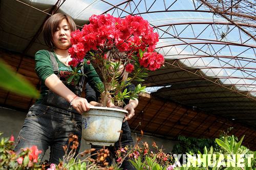 “籃球?qū)氊悺苯帐菆@林工程專業(yè)的學(xué)生,在大棚里和觀賞植物打交道是她的“主業(yè)”。(3月2日攝)新華社記者李鋼攝