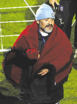 當(dāng)阿根廷隊(duì)剛剛結(jié)束訓(xùn)練,馬拉多納一行正要返回更衣室,這時(shí)兩個(gè)來自薩爾塔市(布宜諾斯艾利斯以北的小城)的阿根廷記者走了過來向老馬講述了他們長途跋涉帶來禮物和祝福的故事,馬拉多納本來是快步走向更衣室的,聽到記者的故事立刻停了下來!斑@是來自San Antonio de Los Cobres,一個(gè)海拔4000米小城孩子們的禮物,他們托我們?yōu)槟銕砹颂鹤。”聽到這里馬拉多納的真性情顯露無遺,接過毯子立刻披在了身上。這個(gè)被提到的小城叫做 San Antonio de los Cobres,距薩爾塔市約180公里,距布宜諾斯艾利斯約1750公里,海拔高達(dá)4000米,那里的球迷無法通過電視來觀看世界杯的比賽,但是他們一樣喜歡馬拉多納,關(guān)注阿根廷隊(duì)。許凱 黃啟元 本報(bào)南非專電
