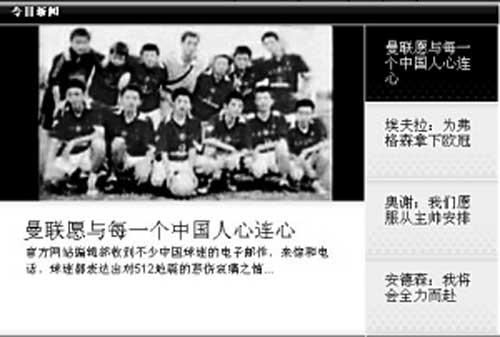 而在這場慘絕人寰的天災(zāi)中,我們發(fā)現(xiàn)了四川都江堰中學(xué)一班已經(jīng)遇難的同學(xué),他們跟我們一樣,都是曼聯(lián)的忠實(shí)球迷。出事之前,他們在慶祝曼聯(lián)的奪冠,還為我們留下了畢生難忘的一張照片,十幾個孩子身穿曼聯(lián)球迷,歡天喜地留影。轉(zhuǎn)瞬之間,這些孩子中的一些人,已經(jīng)在這場浩劫中遇難。思之令人不禁潸然淚下!