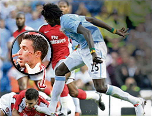 在攻進(jìn)曼城的第三粒進(jìn)球后,他狂奔百米來(lái)到阿森納球迷面前慶祝,結(jié)果這一挑釁行為讓他領(lǐng)到了黃牌警告。比賽中他還曾踩到“槍手”范佩西的臉,后者頓時(shí)掛了彩,但阿德巴約并未因此受到主裁判的懲罰。不過(guò),荷蘭人賽后鄭重聲明,他認(rèn)為阿德巴約是故意傷人,他為此感到失望。