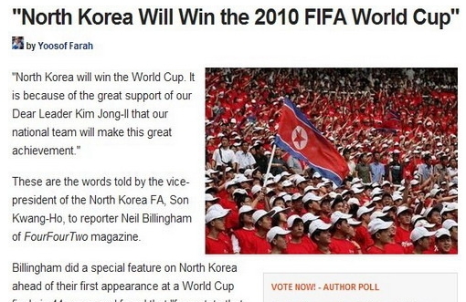 在此前的熱身賽中球隊2-2戰(zhàn)平前歐洲冠軍希臘,這場平局極大刺激了朝鮮人的信心。在談到為何認為球隊能夠奪冠時,孫光浩態(tài)度十分堅定:“本屆世界杯朝鮮將會奪冠,因為我們有親愛的領袖金正日的巨大支持。這將會帶領我們達到最后的目標!”